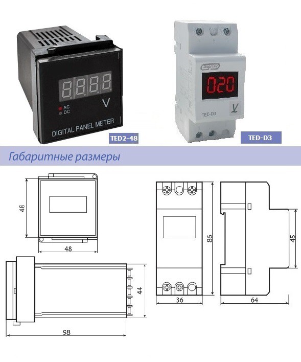 Модель | амперметр TED2-48 | вольтметр TED2-48 |