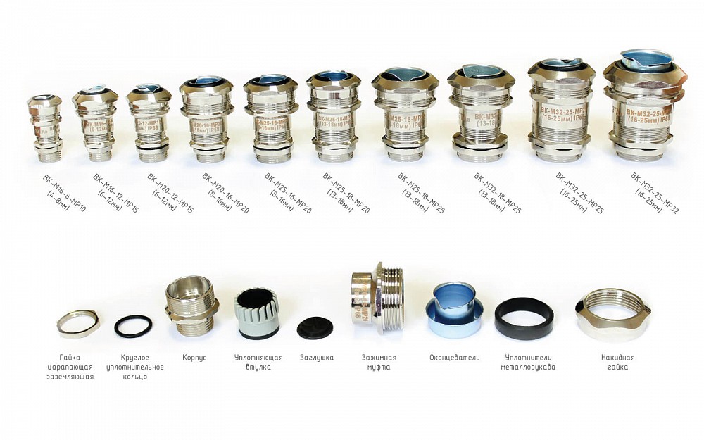 Кабельный ввод ВК-М50-38-МР50 предназначен для ввода в корпус электрооборудования круглого кабеля диаметром30-38мм, в металлорукаве с условным проходом 50мм, обеспечивается надёжный контакт оборудования с металлорукавом.